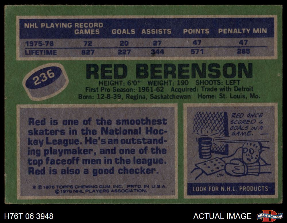 1976 Topps #236 Red Berenson