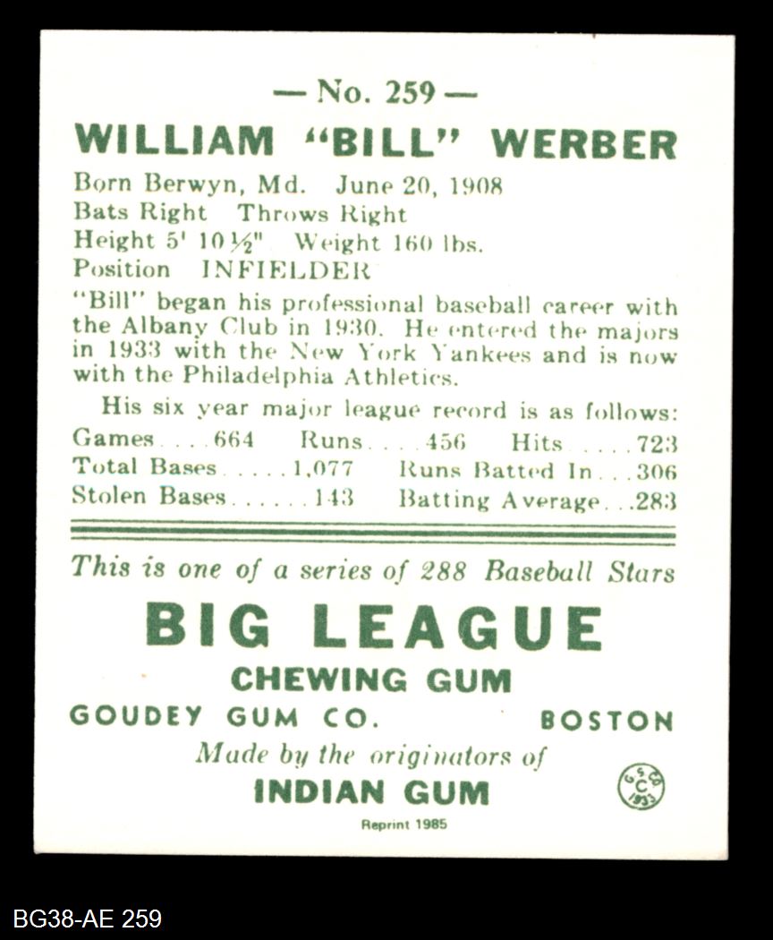 1938 Goudey Heads-Up Reprint #259 Billy Werber 8 - NM/MT
