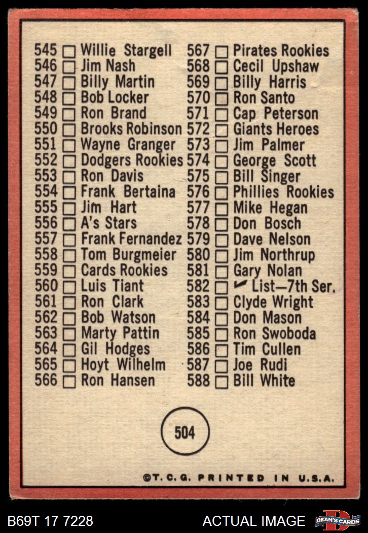 1969 Topps #504  -  Brooks Robinson Checklist 6 Front Thumbnail