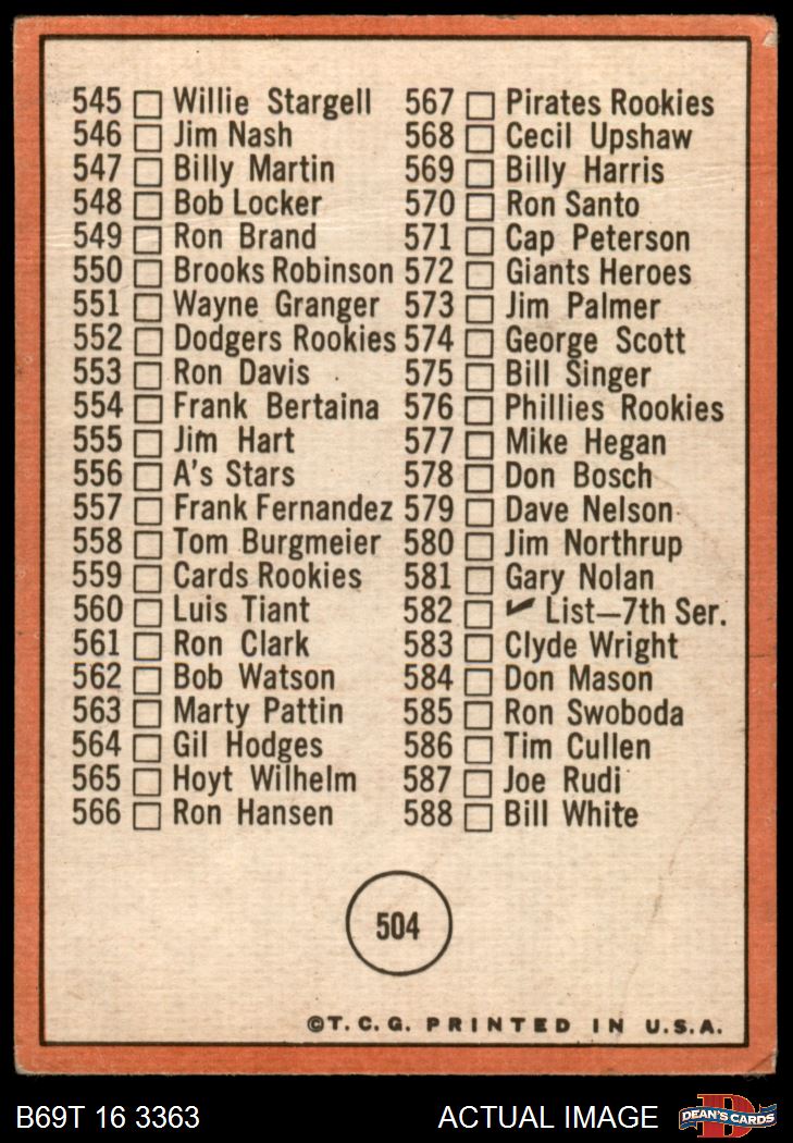 1969 Topps Baseball Cards (12,843 available)1969 Topps Orioles (991 available)
