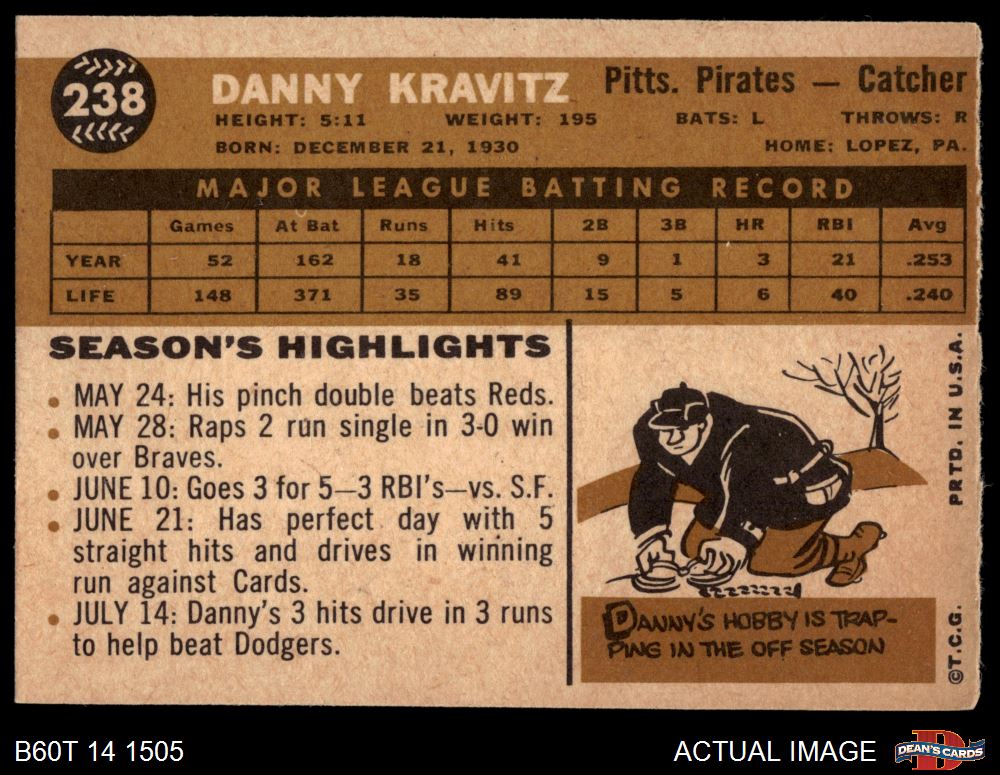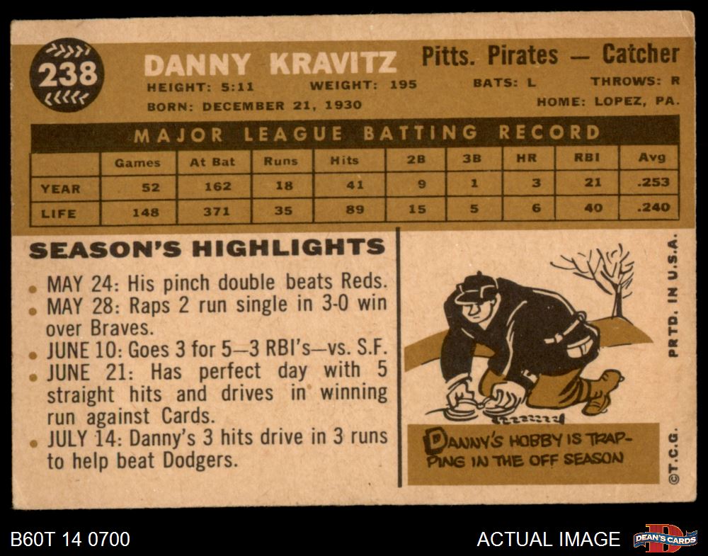 1960 Topps #238 Danny Kravitz