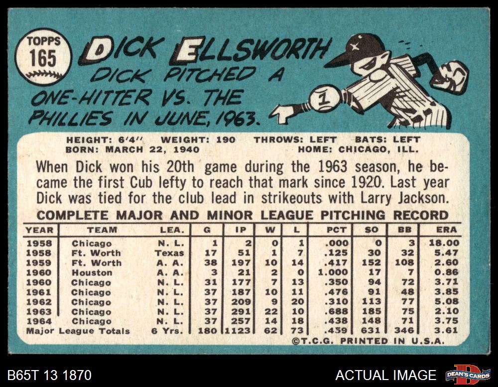 1965 Topps #165 Dick Ellsworth 3 - VG