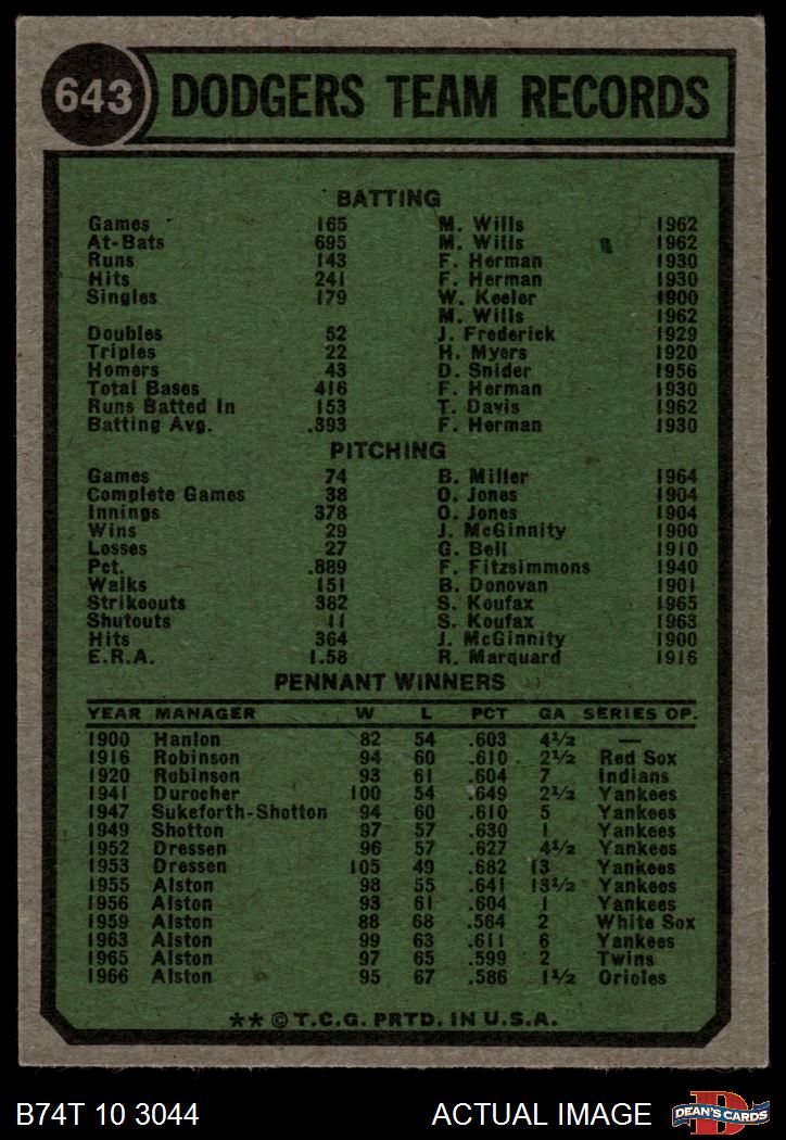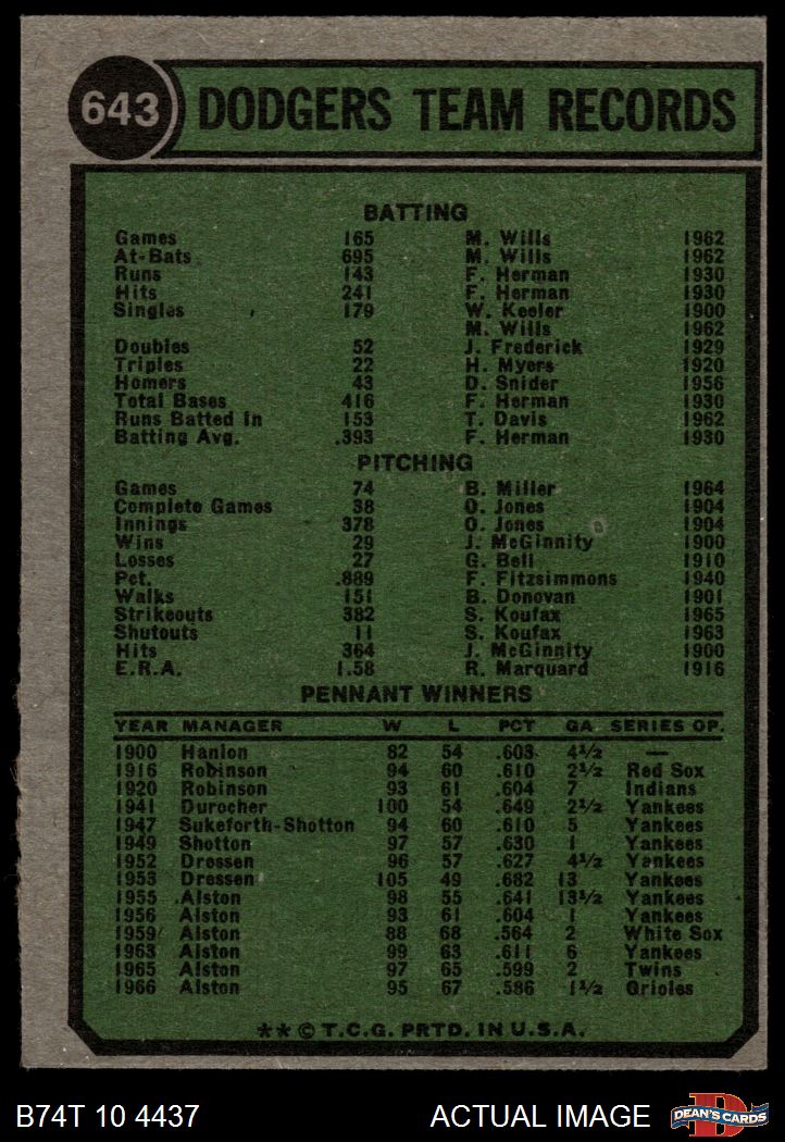1974 Topps Baseball Cards (17,904 available)1974 Topps Dodgers (1,126 available)