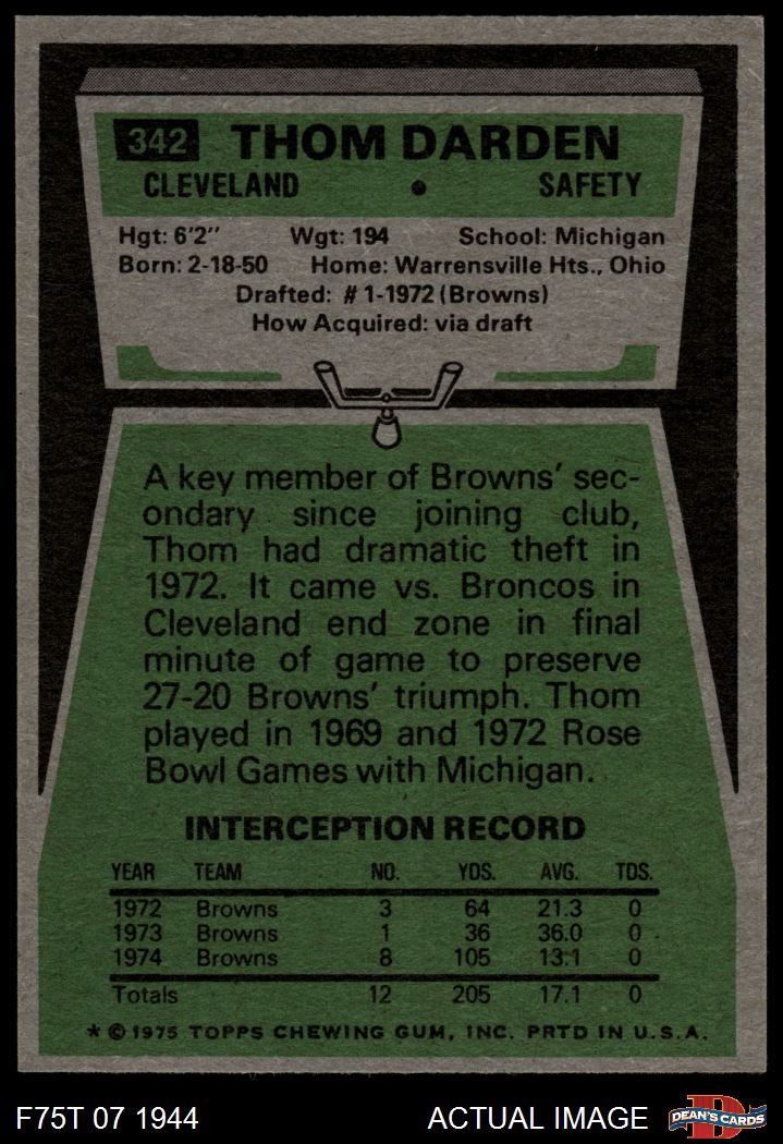 1975 Topps #342 Thom Darden 7 - NM