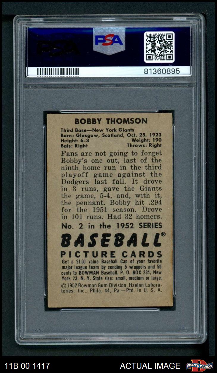1952 Bowman #2 Bobby Thomson PSA 3 - VG