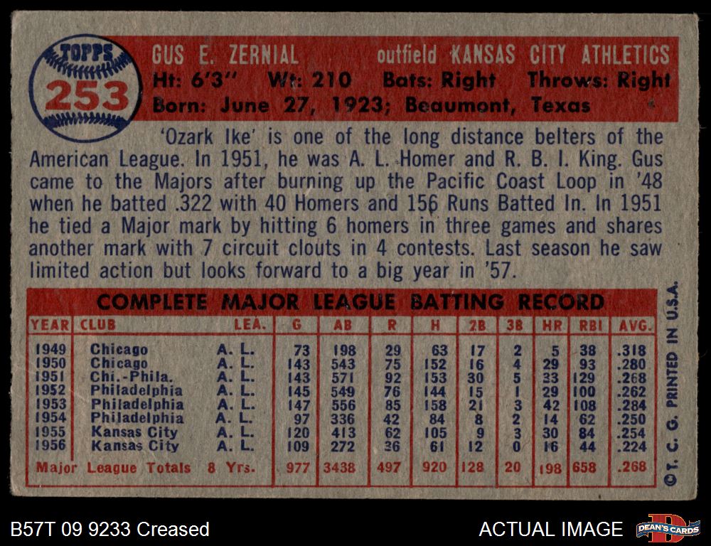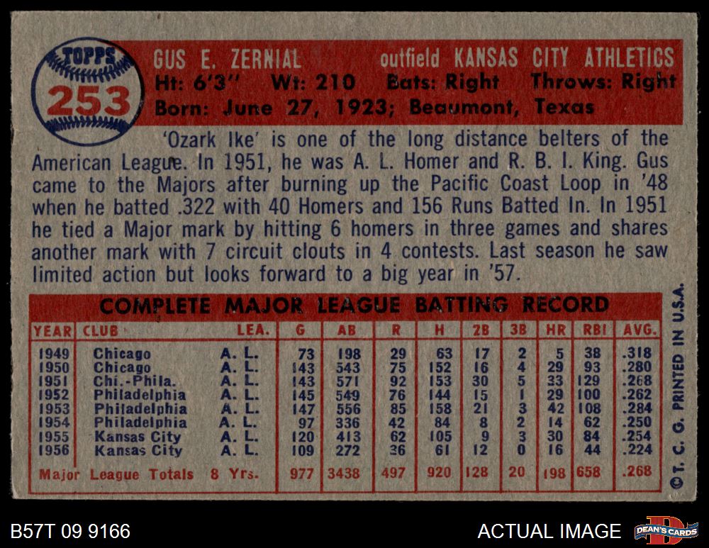 1957 Topps #253 Gus Zernial
