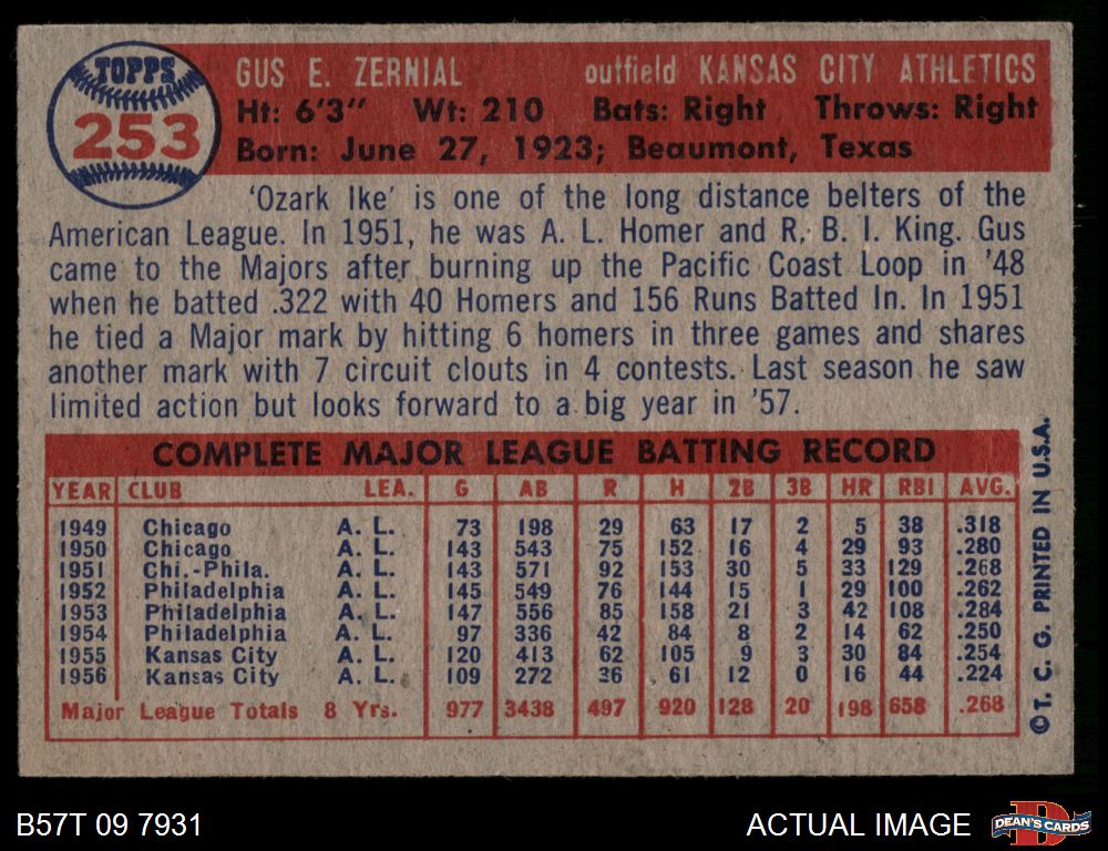 1957 Topps #253 Gus Zernial 5 - EX
