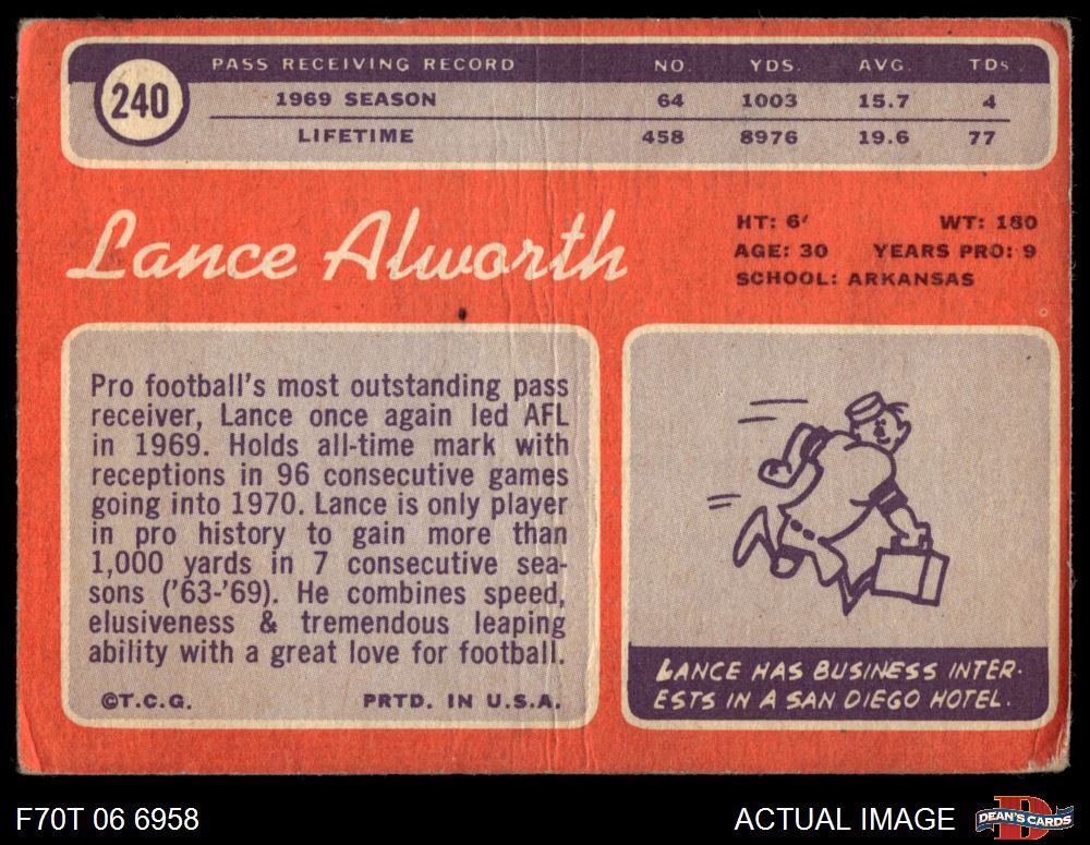 1970 Topps #240 Lance Alworth 1.5 - FAIR