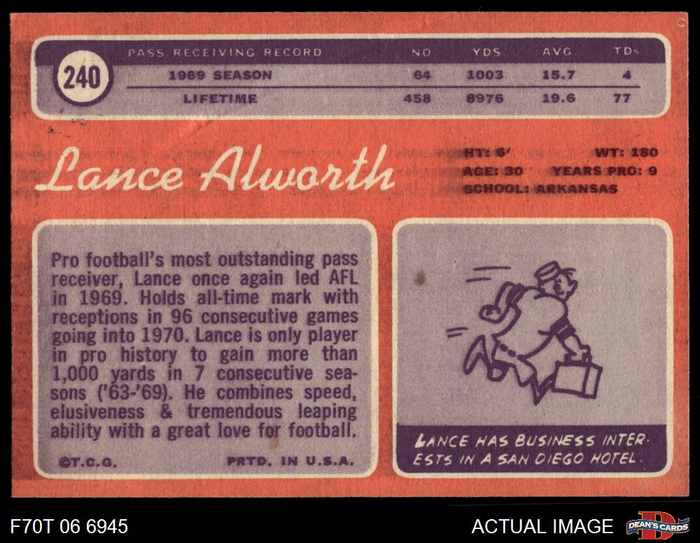 1970 Topps #240 Lance Alworth 2 - GOOD