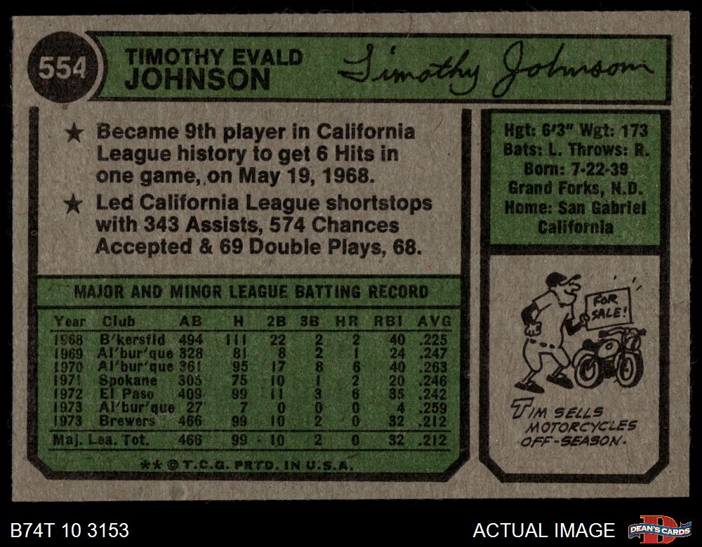 1974 Topps #554 Tim Johnson 6 - EX/MT