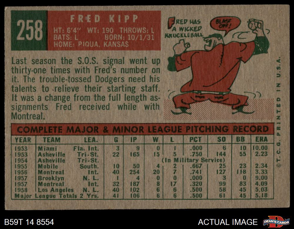 1959 Topps #258 Fred Kipp 4 - VG/EX