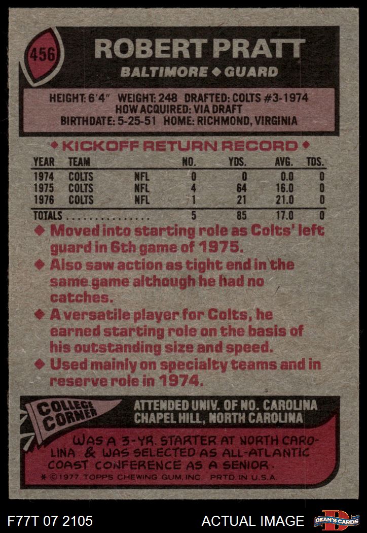 1977 Topps #456 Robert Pratt