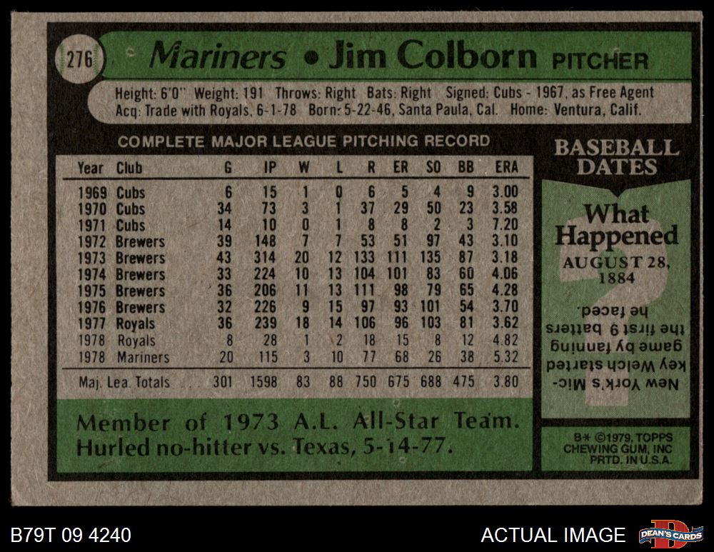 1979 Topps #276 Jim Colborn 2 - GOOD