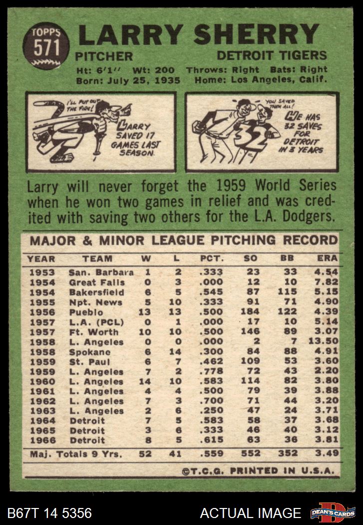 1967 Topps #571 Larry Sherry
