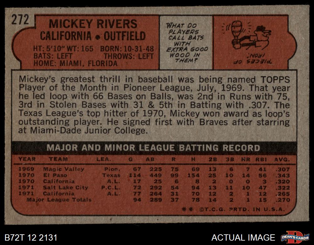 1972 Topps #272 Mickey Rivers