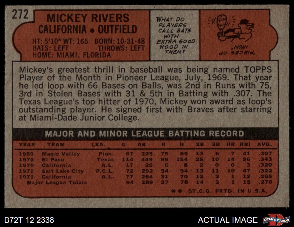 1972 Topps #272 Mickey Rivers 3 - VG