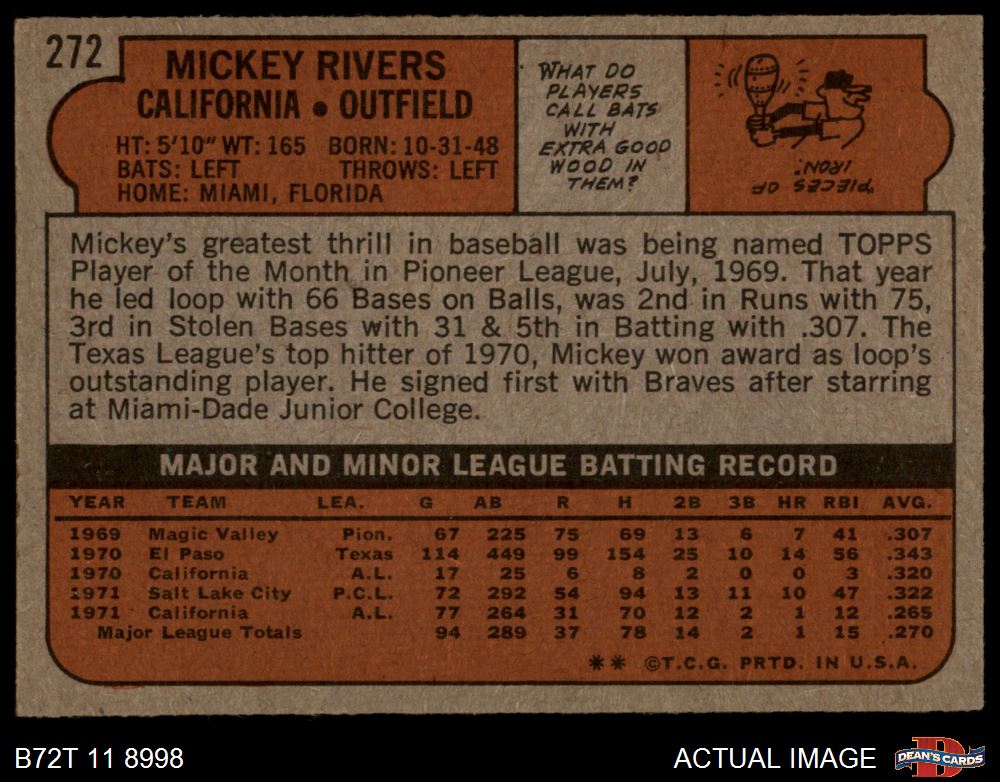 1972 Topps #272 Mickey Rivers 5 - EX
