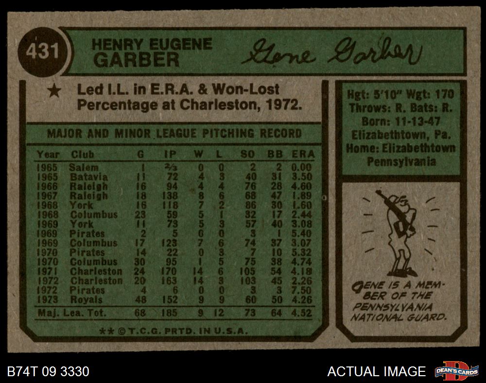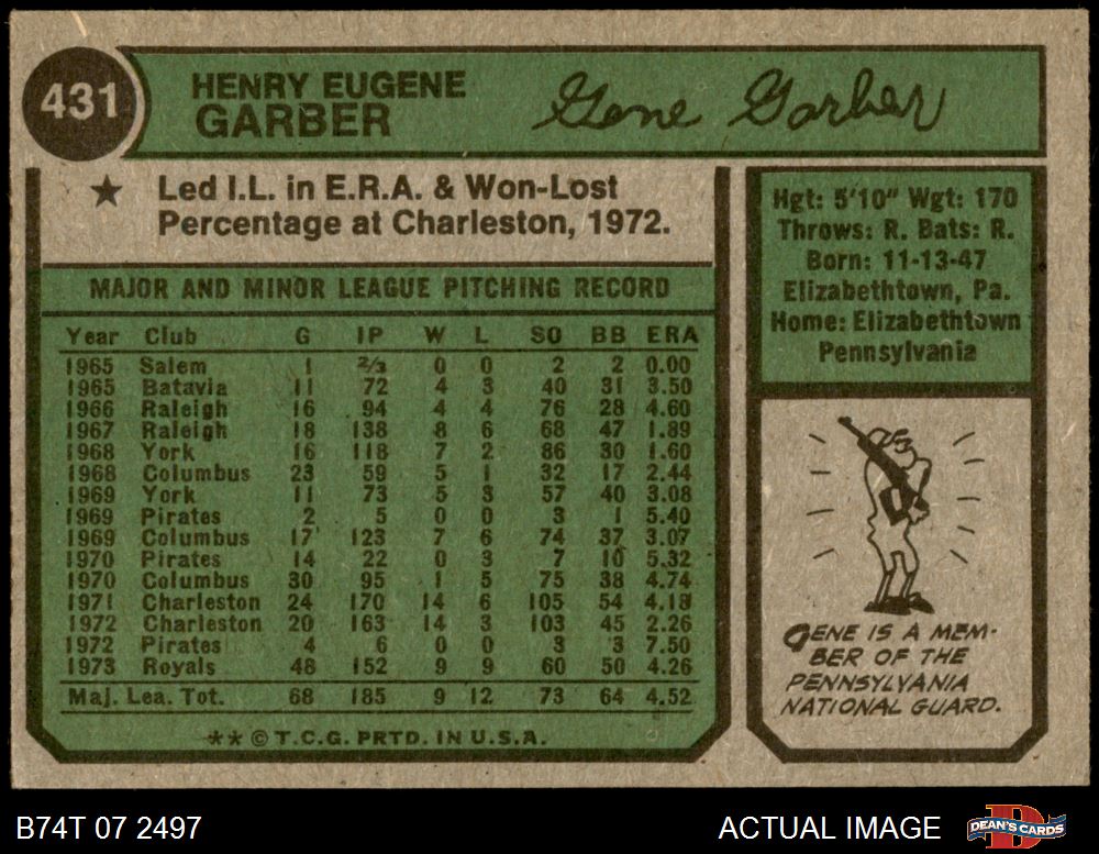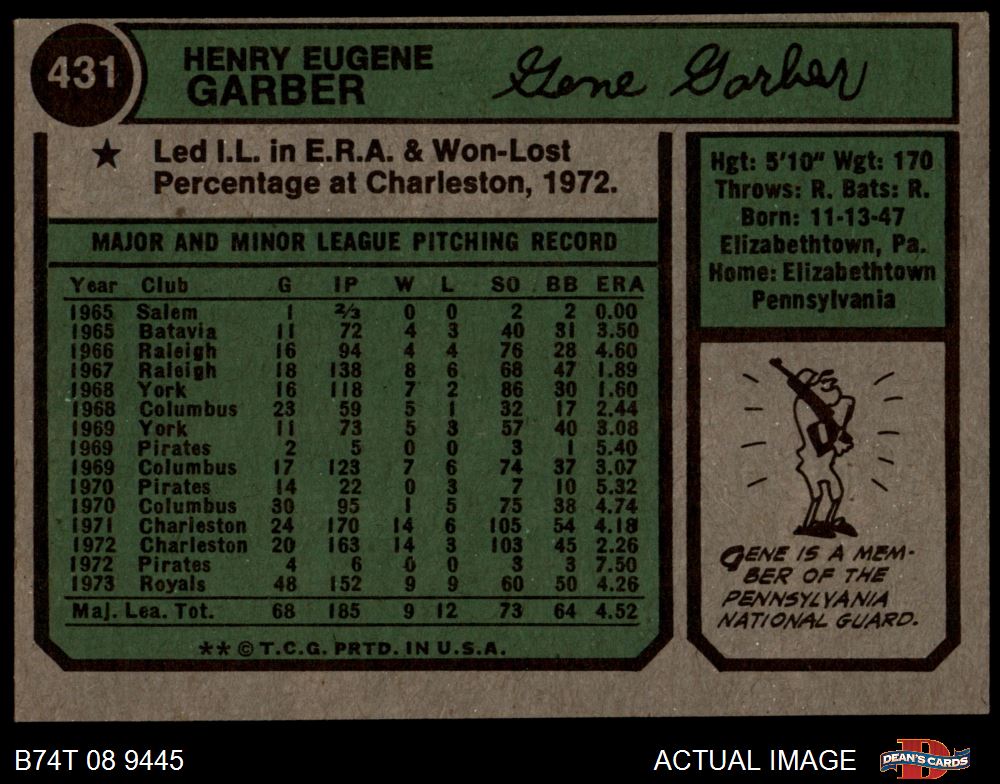 1974 Topps #431 Gene Garber 4 - VG/EX