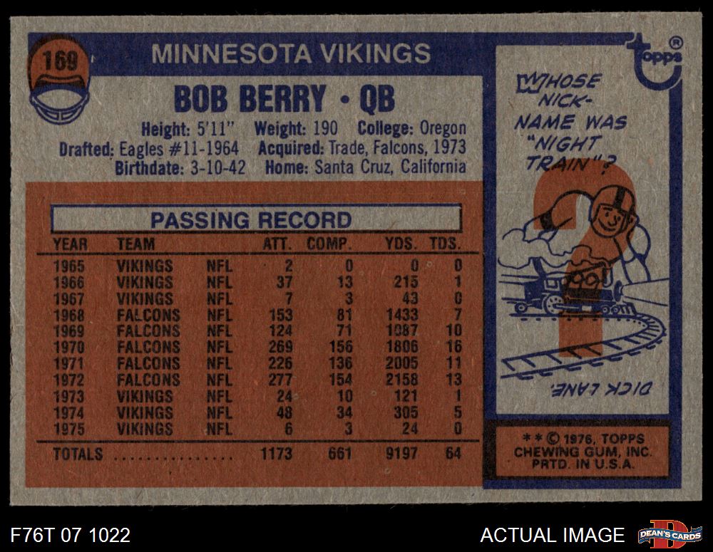 1976 Topps #169 Bob Berry 5 - EX