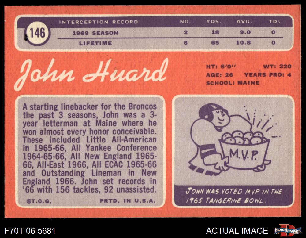 1970 Topps #146 John Huard 5.5 - EX+