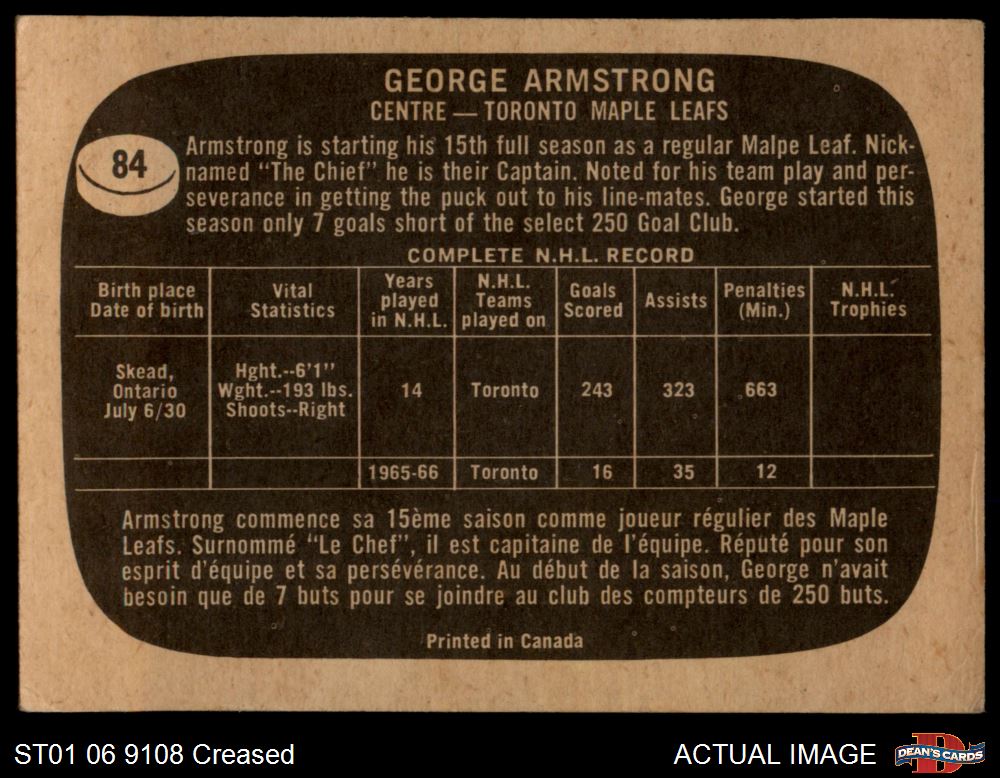 1966 Topps #84 George Armstrong Front Thumbnail
