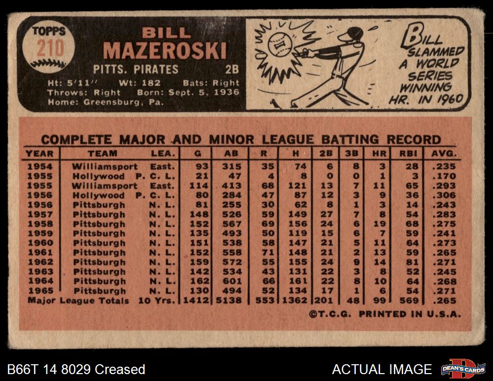 1966 Topps #210 Bill Mazeroski 1 - POOR