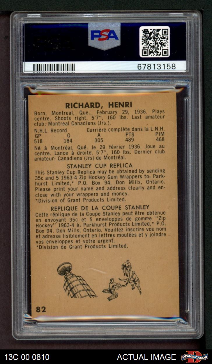 1963 Parkhurst #82 Henri Richard PSA 6 - EX/MT