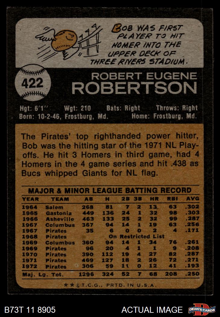 1973 Topps #422 Bob Robertson 6.5 - EX/MT+