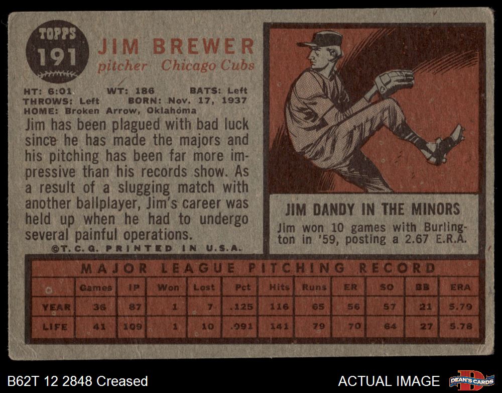 1962 Topps #191 GRN Jim Brewer 2 - GOOD