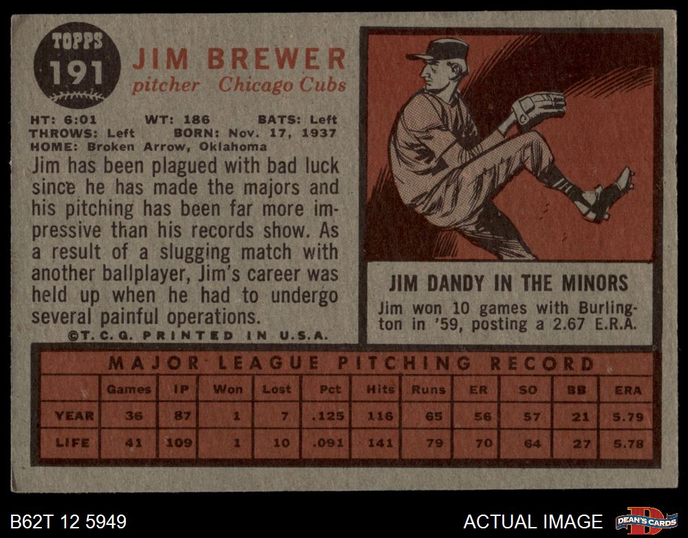 1962 Topps #191 GRN Jim Brewer Front Thumbnail