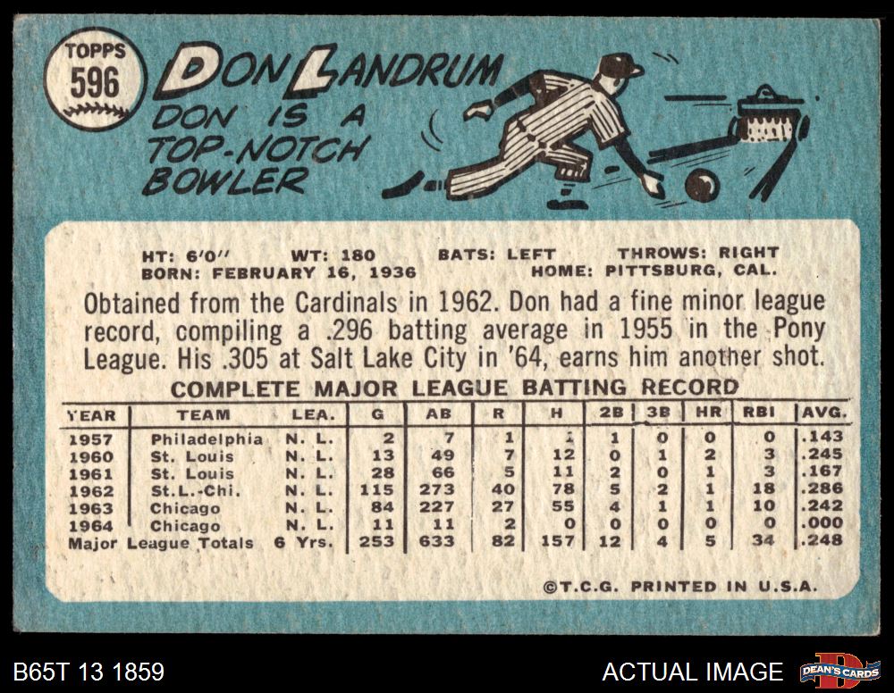 1965 Topps #596 Don Landrum 2 - GOOD