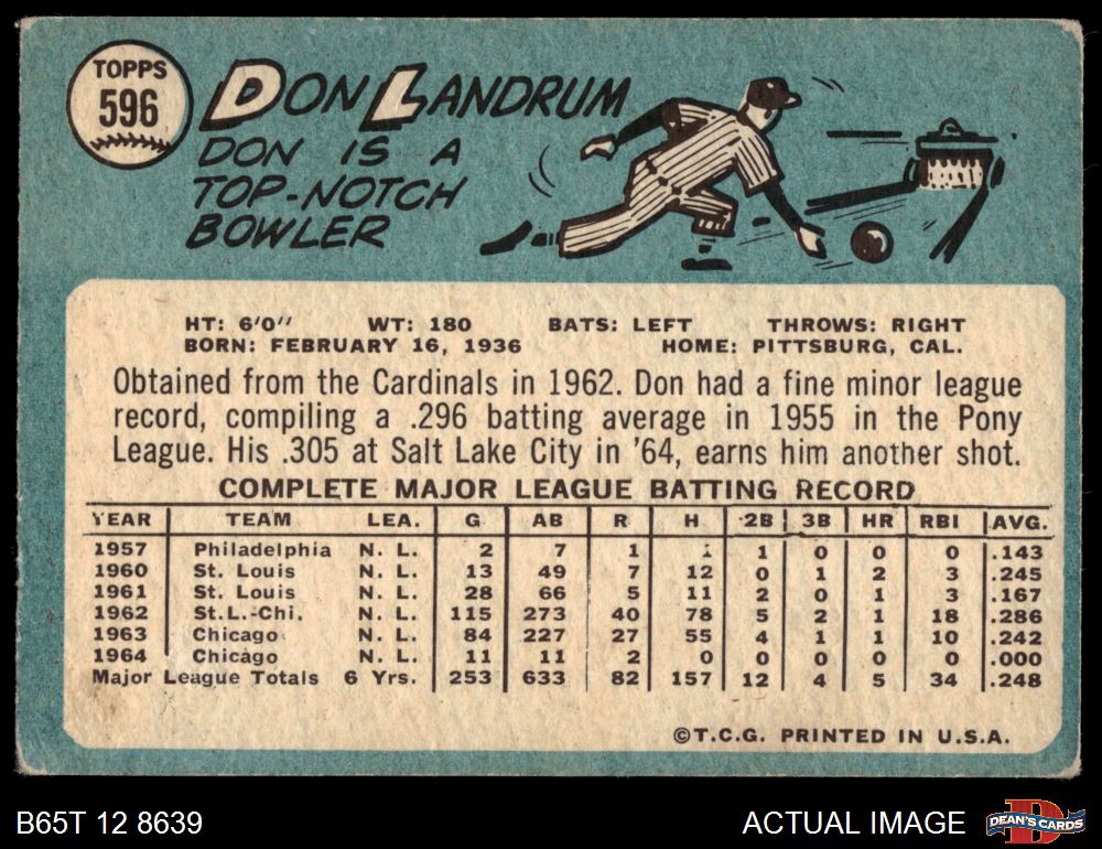1965 Topps #596 Don Landrum 2.5 - GD+