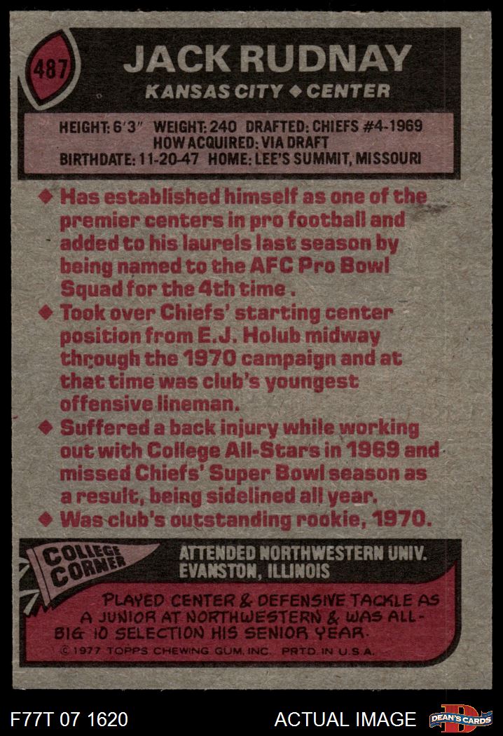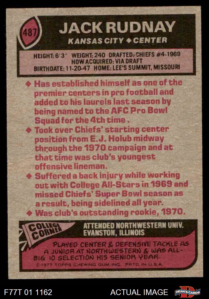 1977 Topps #487 Jack Rudnay