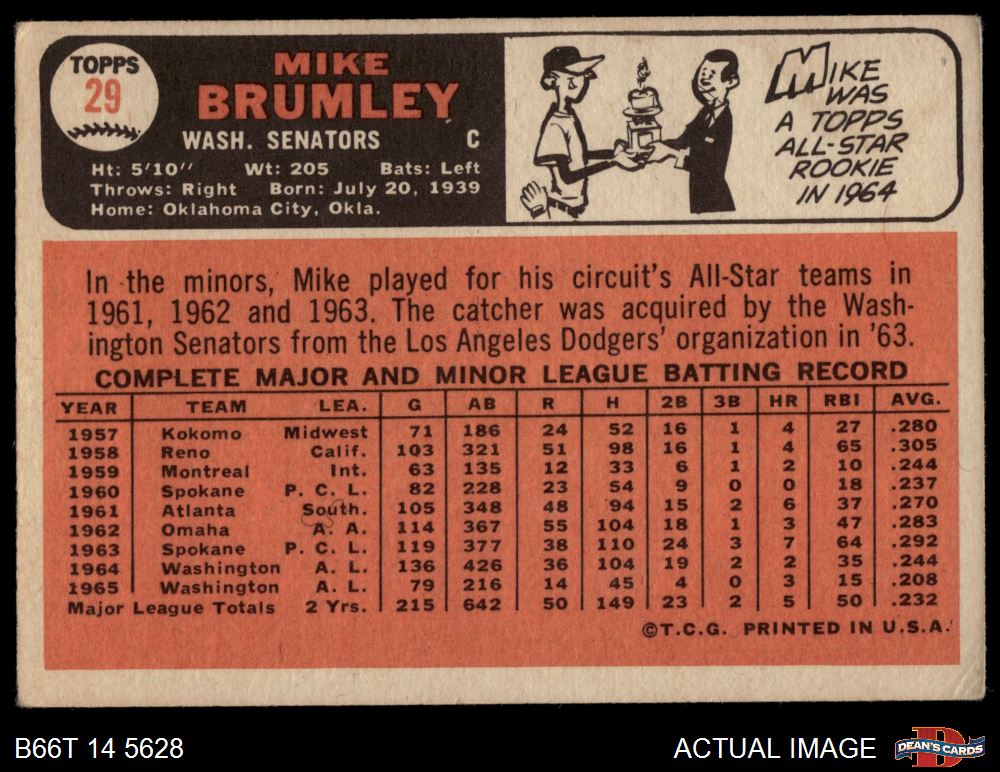 1966 Topps Baseball Cards (17,029 available)1966 Topps Senators (1,190 available)
