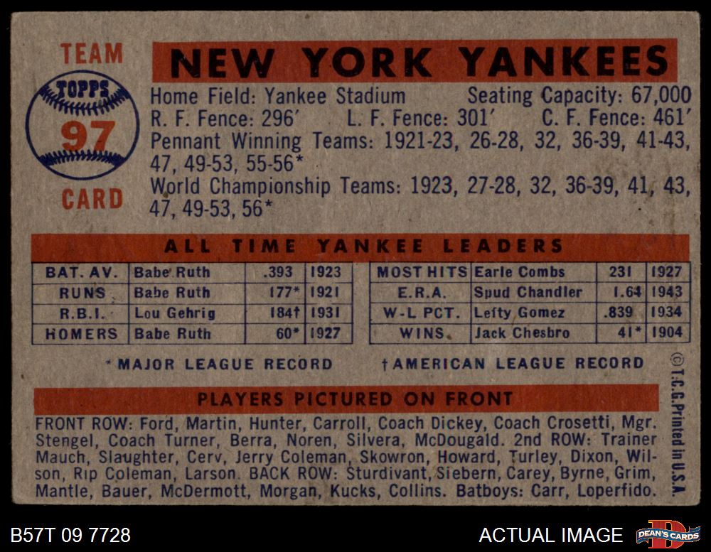 1957 Topps #97 Yankees Team 2 - GOOD