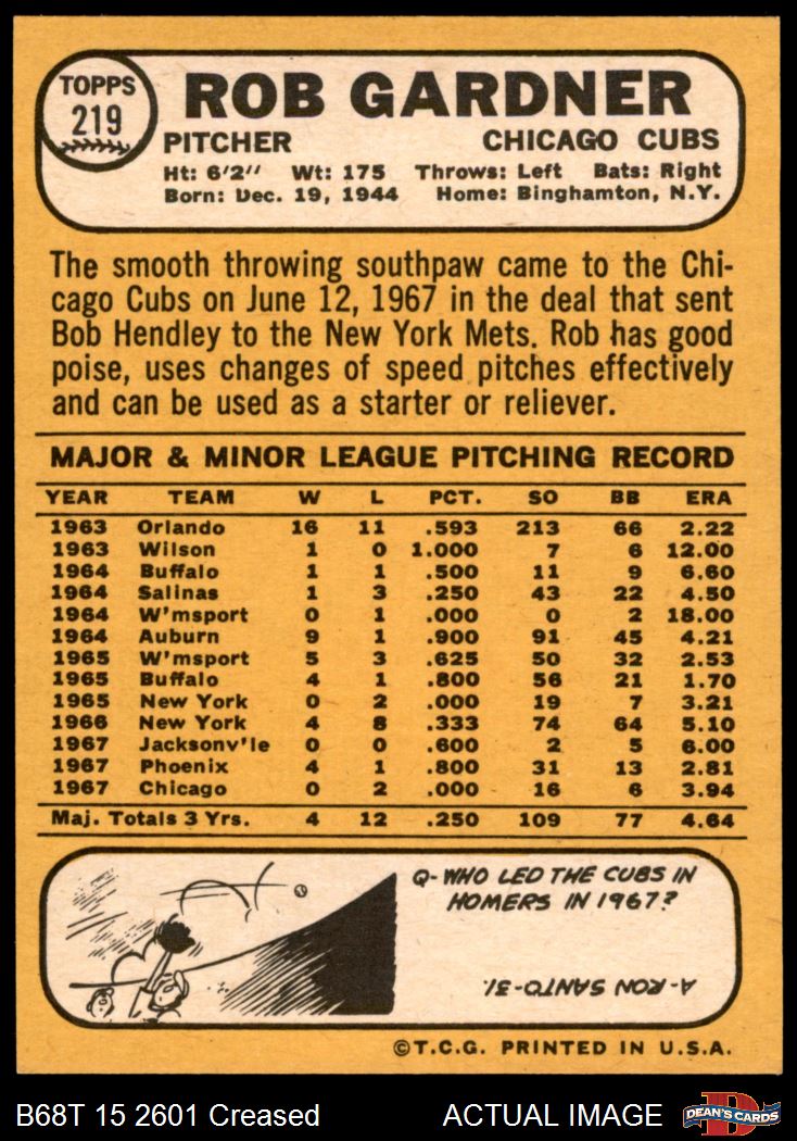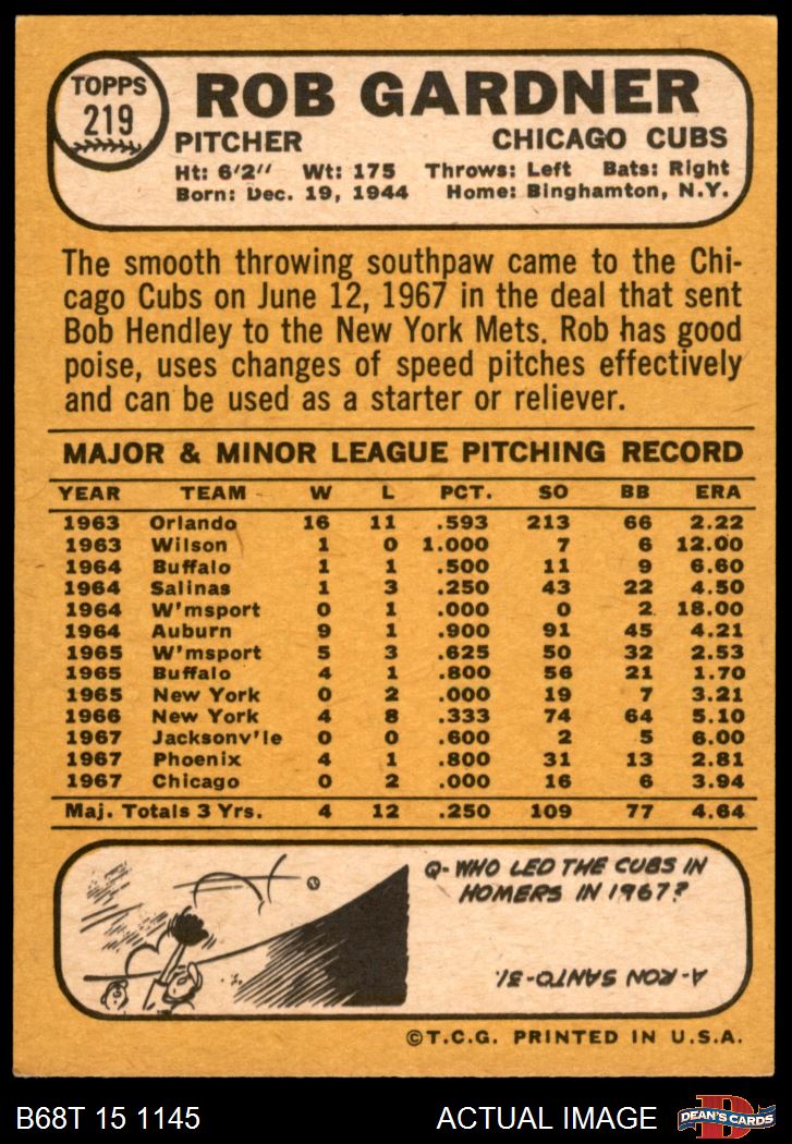 1968 Topps #219 Rob Gardner
