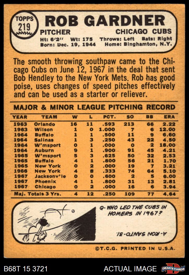 1968 Topps #219 Rob Gardner 6 - EX/MT