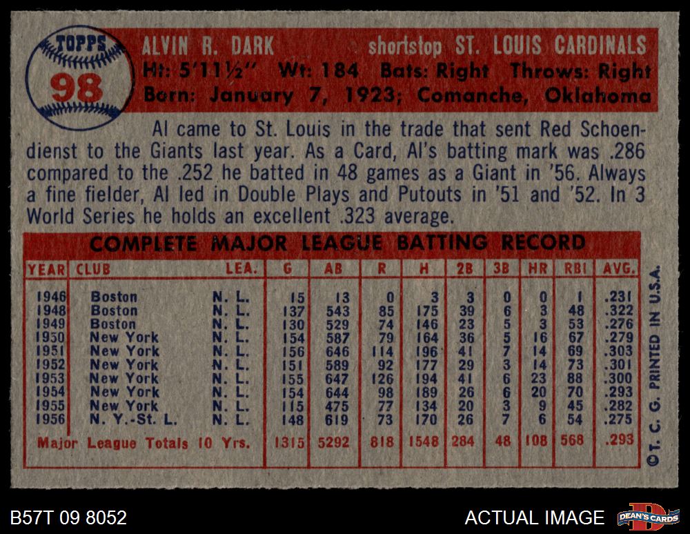1957 Topps Baseball Cards (4,841 available)1957 Topps Cardinals (1,448 available)