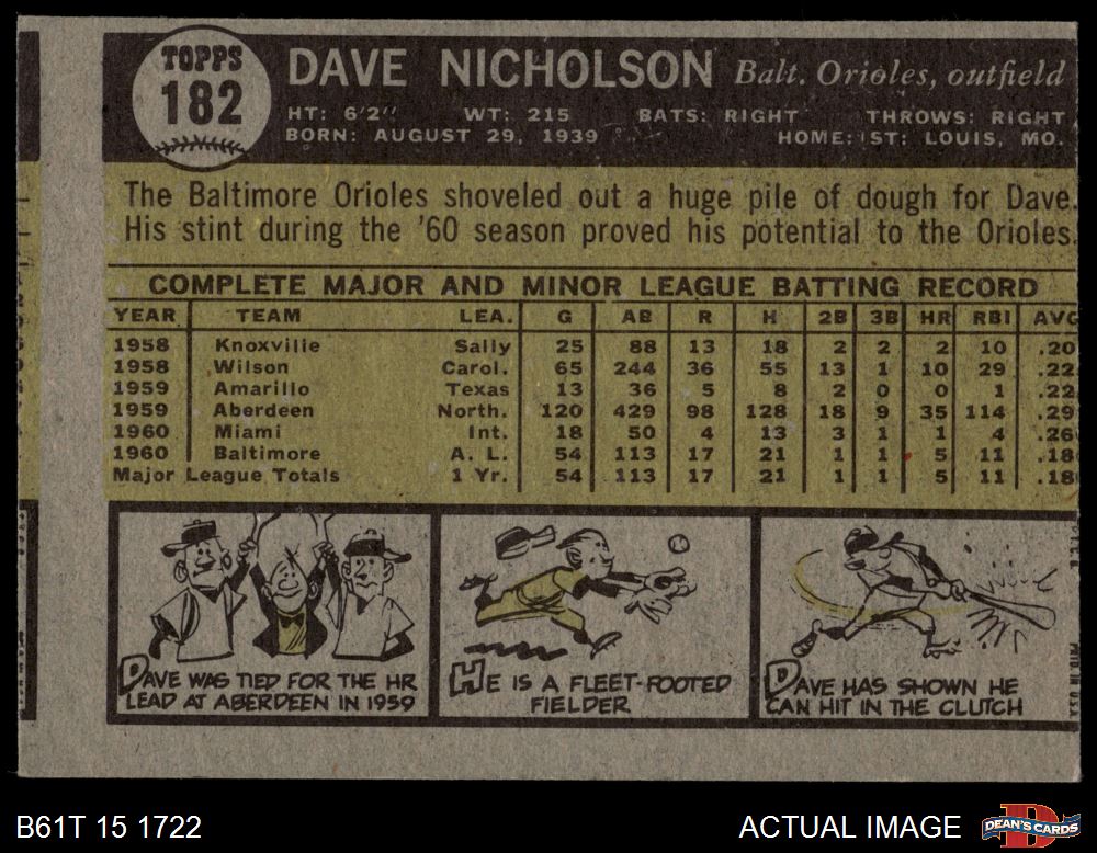 1961 Topps #182 Dave Nicholson AUTHENTIC