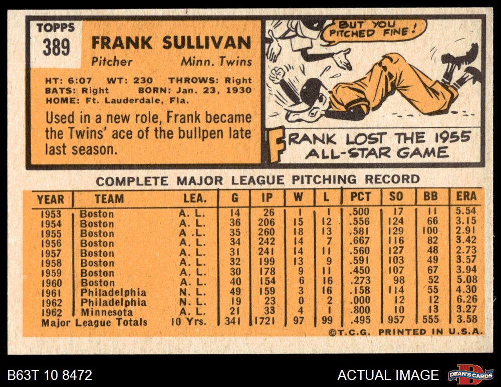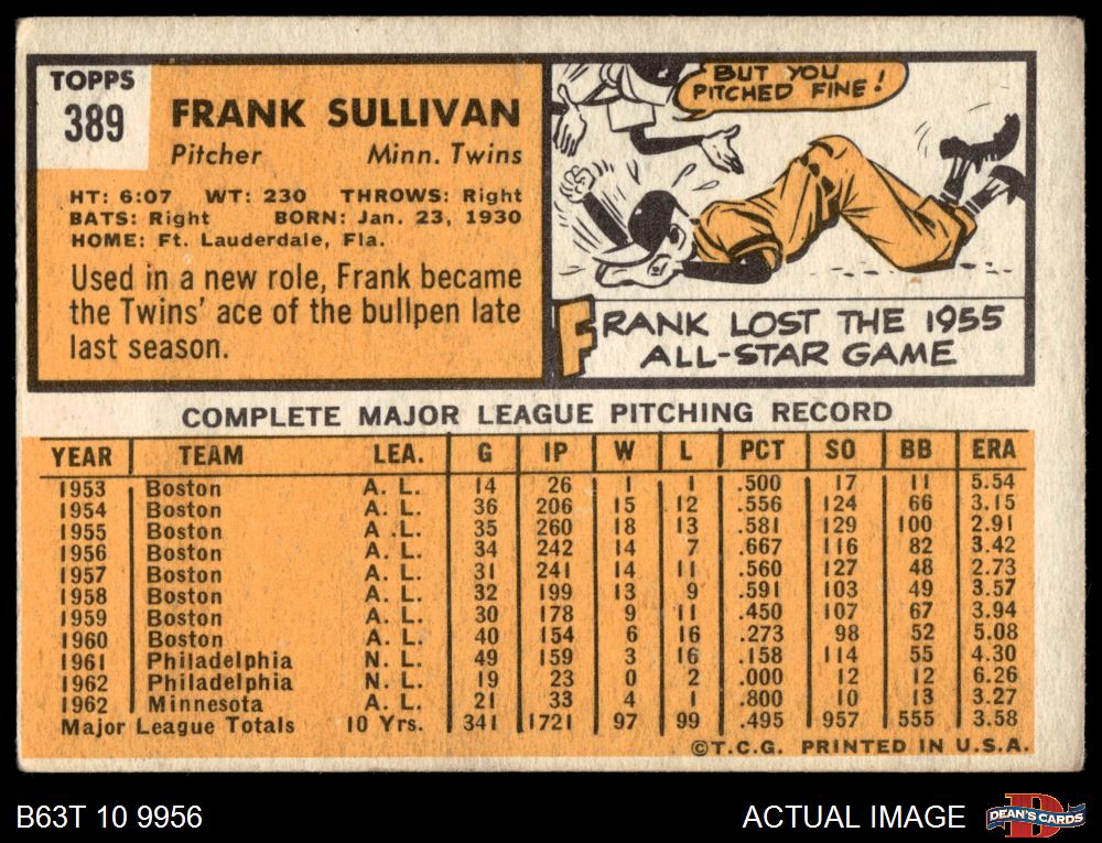 1963 Topps #389 Frank Sullivan