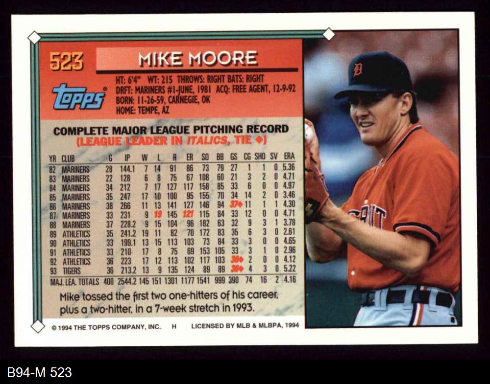 1994 Topps #523 Mike Moore 8 - NM/MT