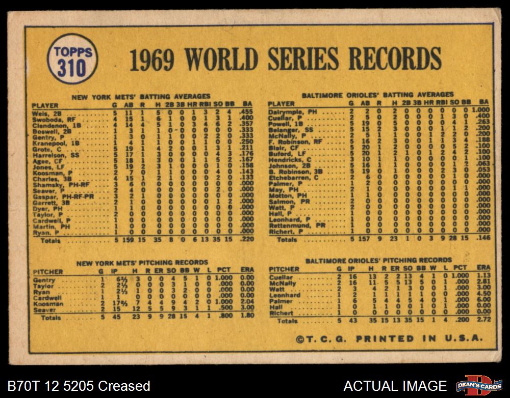 1970 Topps Baseball Cards (12,400 available)1970 Topps Mets / Orioles (174 available)