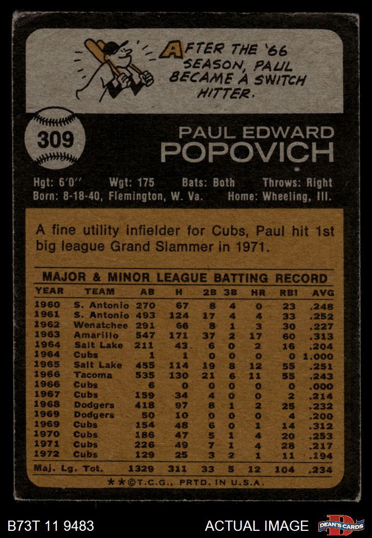 1973 Topps #309 Paul Popovich 2 - GOOD