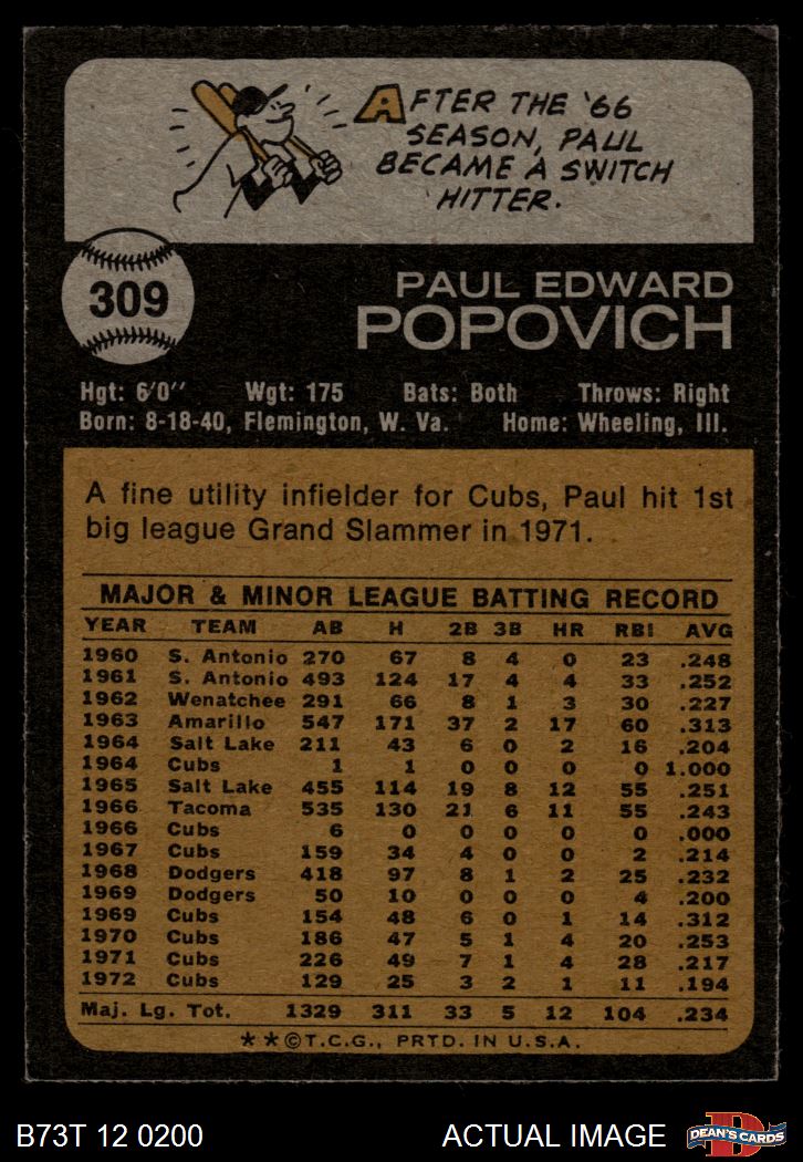 1973 Topps #309 Paul Popovich 4.5 - VG/EX+