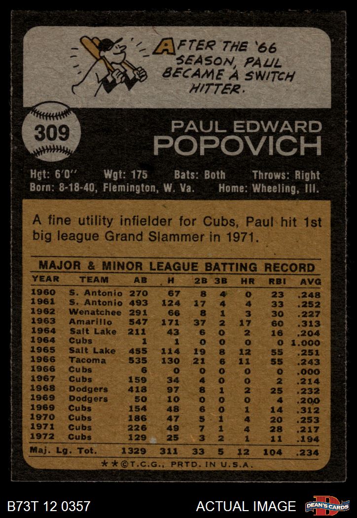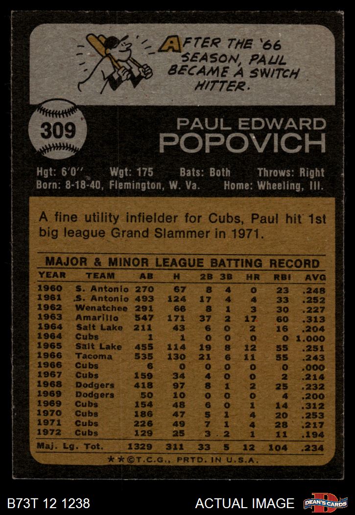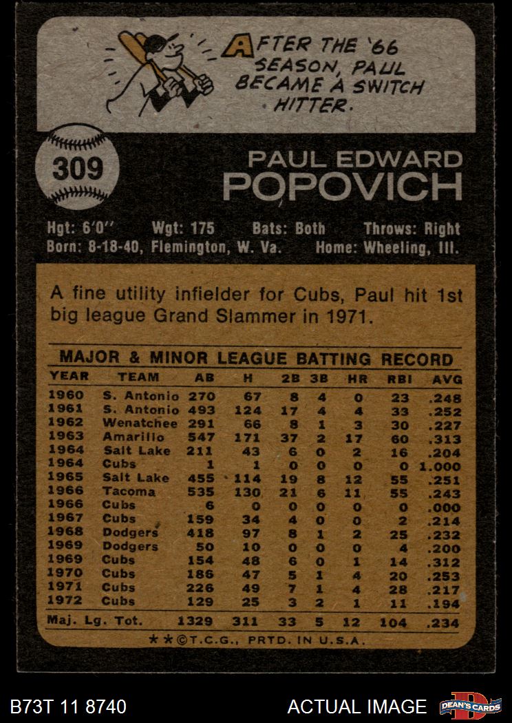 1973 Topps #309 Paul Popovich 5 - EX