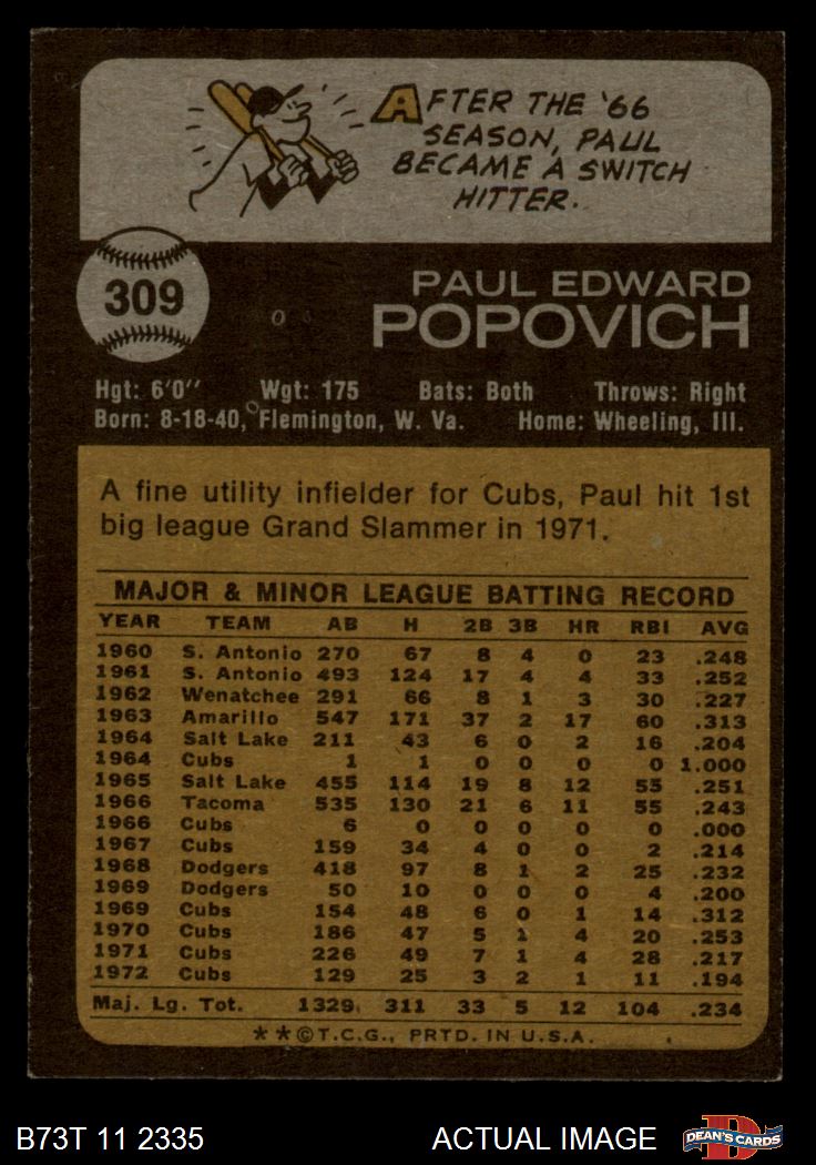 1973 Topps #309 Paul Popovich 6 - EX/MT