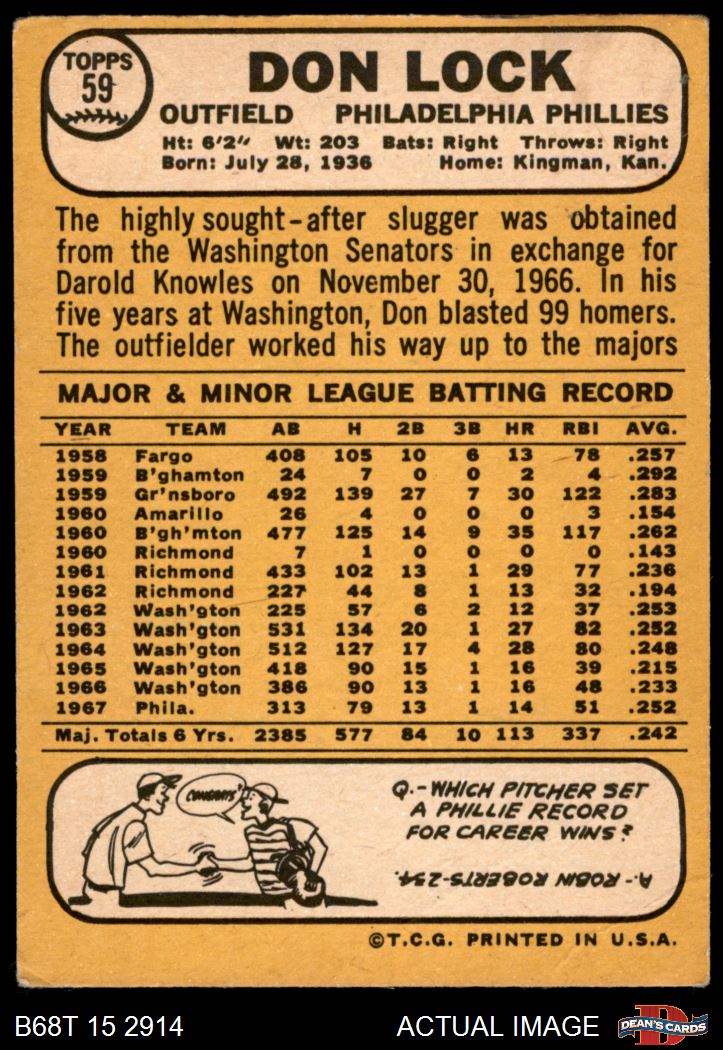 1968 Topps #59 Don Lock