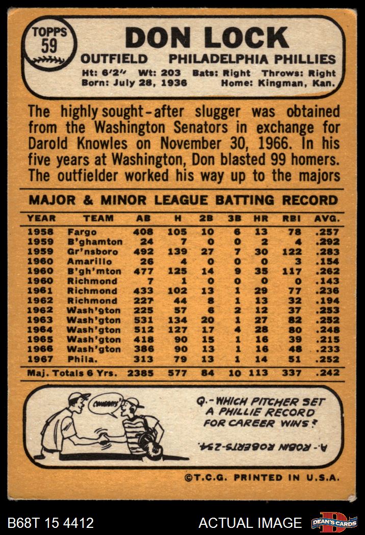1968 Topps #59 Don Lock 4 - VG/EX