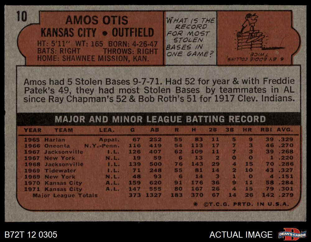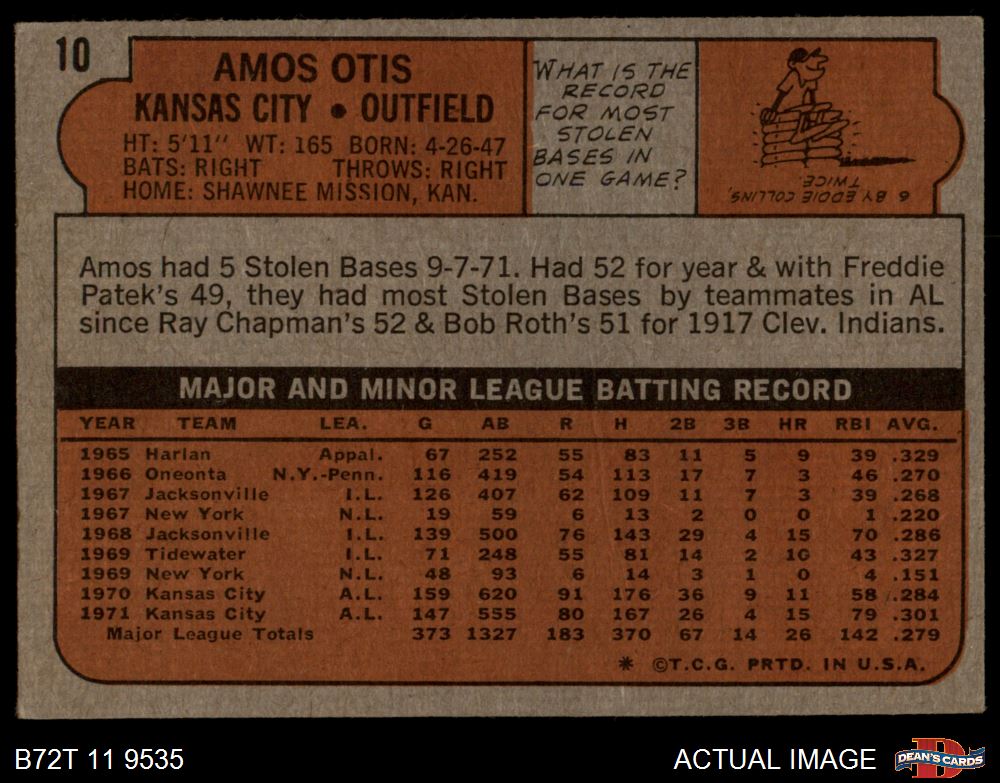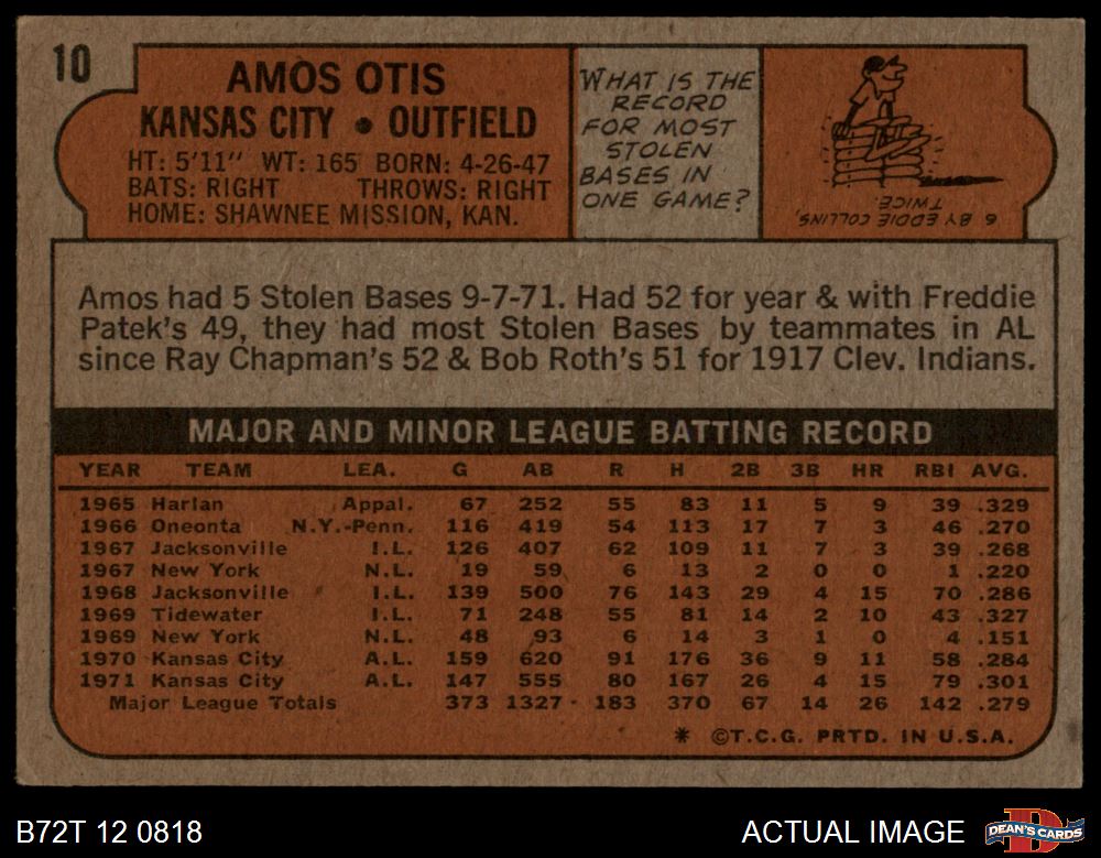 1972 Topps #10 Amos Otis 4 - VG/EX