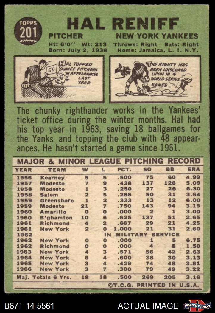 1967 Topps #201 Hal Reniff 4 - VG/EX